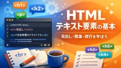 HTMLテキスト要素(見出し・段落・改行)の基本を初心者向けに丁寧に解説します。SEOとAdSense審査に強い正しい書き方、よくある間違い、演習問題と解答例まで網羅しています。