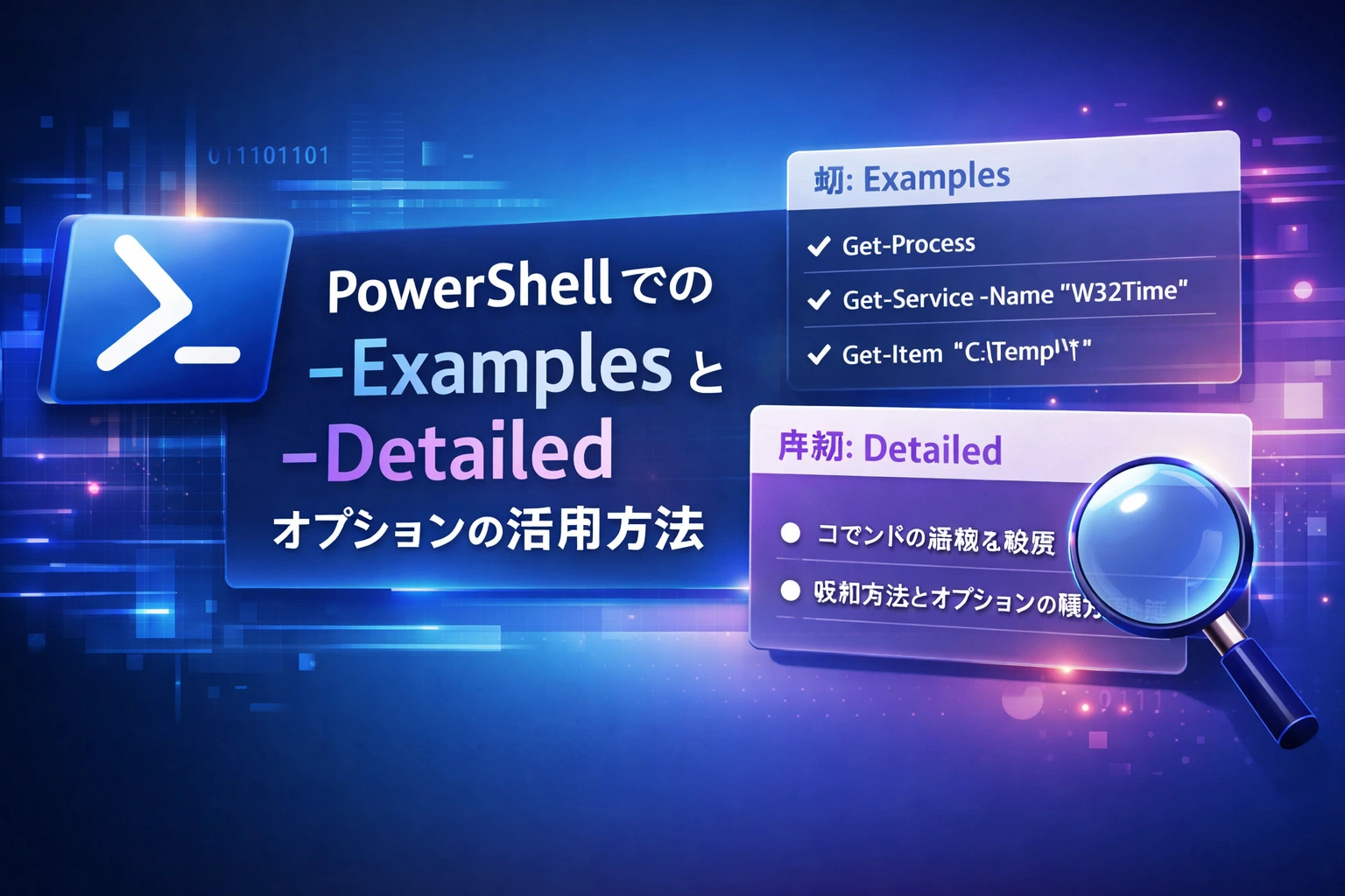 この記事では、PowerShellの -Examples と -Detailed オプションの活用方法について解説しました。