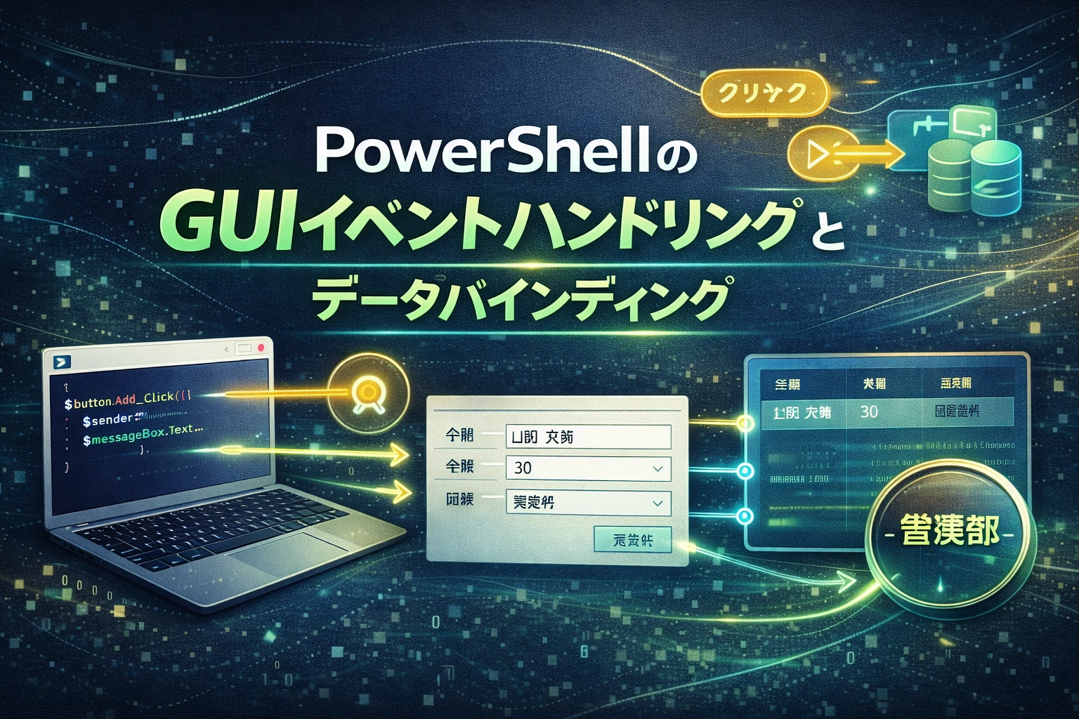 この記事では、PowerShellを使ったGUIのイベントハンドリングデータバインディングについて解説し、実用的なGUIアプリケーション開発の第一歩を踏み出せるようにします。